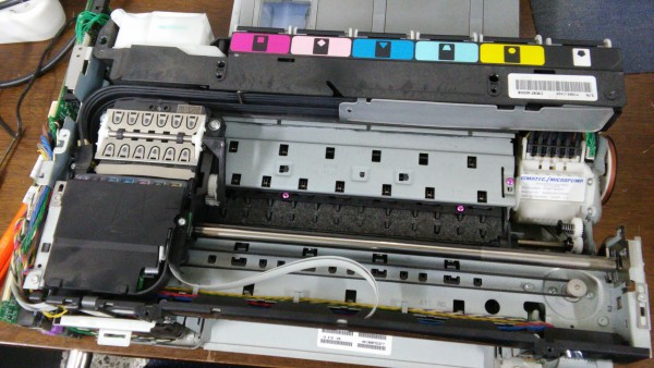 HP 포토스마트 복합기 C6180 복합기의 헤드를 수리하고 있습니다.