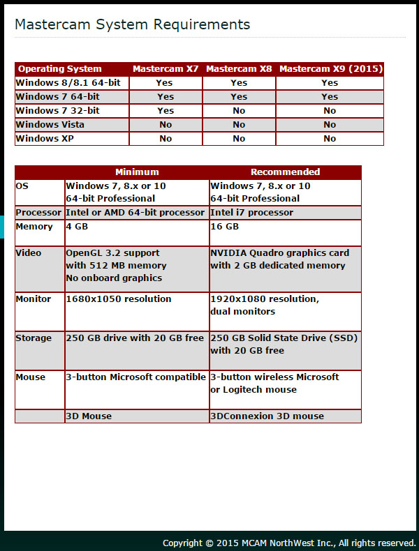 마스터캠 X7,X8,X9 설치용 컴퓨터 사양 확인하세요.